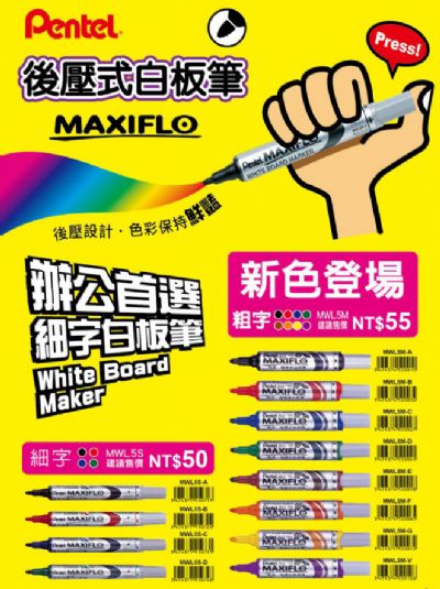 • 直液式墨水裝填,筆記距離1800m以上,是一般白板筆2-3倍