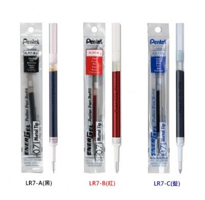 - LR7 筆芯適用筆款:BL57極速鋼珠筆、BL77極速鋼珠筆、K600高級金屬鋼珠筆、K611高級金屬鋼珠筆、K620高級金屬鋼珠筆、K630高級金屬鋼珠筆、K630A高級金屬鋼珠筆、K620W高級金屬鋼珠筆