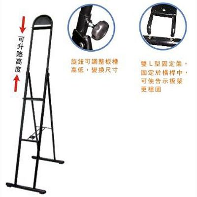 ◎專利開發的結構技術,收納變的更輕鬆 ◎可升降板槽,依板子尺寸調整適合高低 ◎加重型腳架,可抗強風不倒;兩截式組裝,攜帶方便 ◎尺寸/高103 x 寬33 x 深54cm ◎材質/鐵